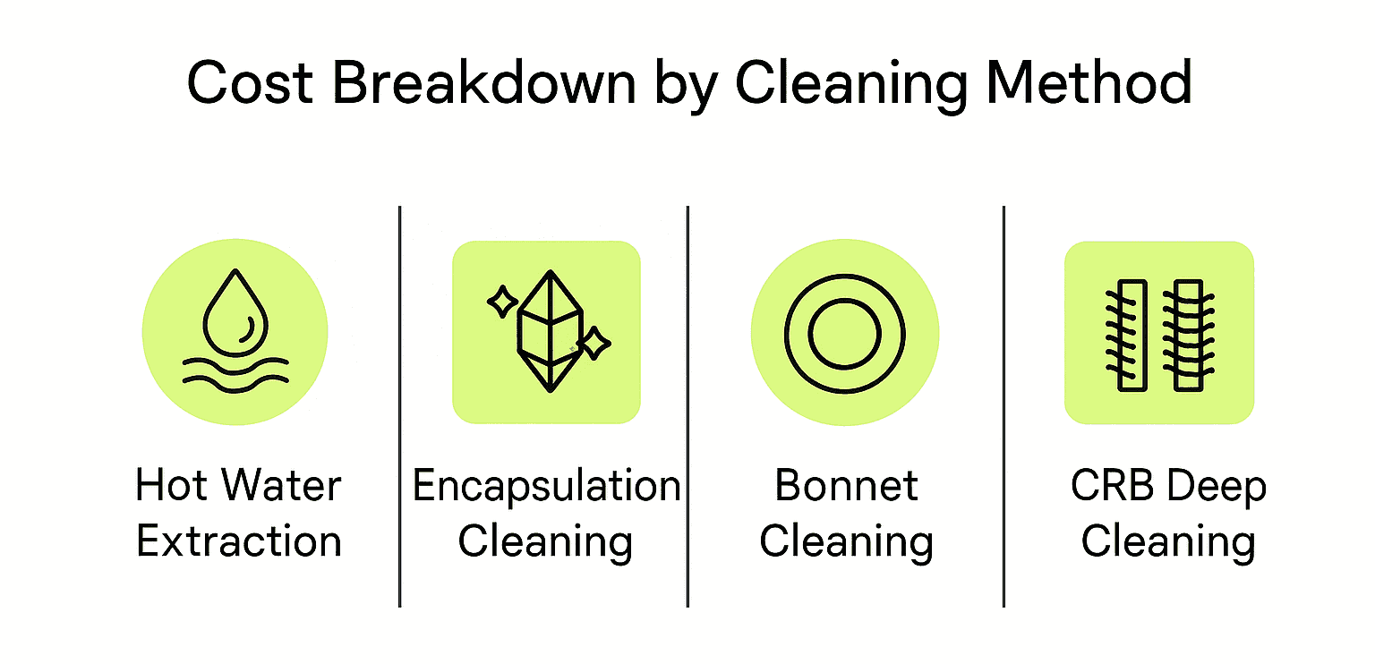This is the most common and most predictable model. You pay based on total square footage, and the rate is tied directly to the method and cleaning level.
